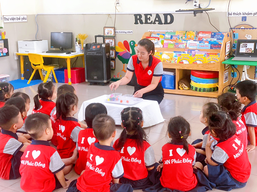 Để chào mừng ngày Nhà giáo Việt Nam 20/11, trường mầm non Phúc Đồng đã tổ chức cuộc thi giáo viên, nhân viên nuôi dưỡng giỏi cấp trường năm học 2023 - 2024, hội thi cũng là hoạt động chuyên môn thường niên nhằm bồi dưỡng, giao lưu, học hỏi chuyên môn cho giáo viên. Hòa chung không khí đó cô và trò lớp Mẫu giáo bé C3 cũng đã chuẩn bị sẵn sàng cho giờ học: “Dạy trẻ kỹ năng gắp chuyển đồ vật”.