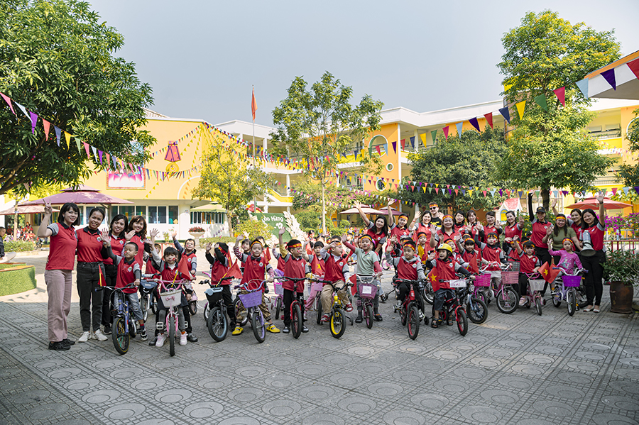 Ngày hội“Đi xe đạp”- Đoàn xe diễu hành thăm quan cảnh đẹp quê hương và tuyên truyền các nội dung bảo vệ môi trường” thu hút sự tham gia của HS toàn khối mẫu giáo lớn và các cô giáo.