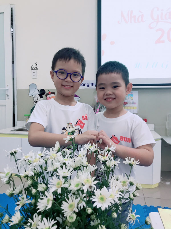 Hai bạn ấy rất thân nhau, ở lớp lúc nào cũng “dính” lấy nhau trong mọi việc chính vì vậy cô và các bạn vẫn chêu rằng: Bum và Sâu là đôi bạn cùng tiến. Mỗi khi bị cô và các bạn chêu hay chẳng may có đùa nghịch quá cô gọi lên nhắc nhở thì hai chàng trai ấy cười xòe một cái vậy là cô cũng đành xí xóa tội thôi. Năm học 2020- 2021, cũng là năm học cuối cùng của Bum và Sâu ở trường MN Phúc Đồng thân yêu này, hai cô chúc cho hai tình yêu bé nhỏ của hai cô cùng với các bạn nhỏ lớp MGL A2 luôn vui vẻ, hào hứng, thích thú đến trường đến lớp như vậy nhé. Chúc các con ngày một mạnh mẽ, vững vàng hơn ở các cấp học tiếp theo để luôn là niềm tự hào của các cô và gia đình nhé. Yêu các con.