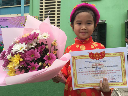 Không chỉ đạt được những thành tích cao trong lớp, tháng 1/2018 vừa qua, trong cuộc thi vẽ tranh với chủ đề “Bảo vệ môi trường” con đã vinh dự mang về cho lớp giải nhất (lứa tuổi mẫu giáo nhỡ) trong bức tranh đề tài “Ô nhiễm khói bụi ở thành phố”. Đó là niềm tự hào không chỉ của bản thân con, của gia đình mà còn là niềm tự hào của các cô và các bạn trong lớp. Đó là nố lực không ngừng của sự sáng tạo, sáng tạo ở mọi lúc, mọi nơi, mọi tình huống,ở tiềm năng trong khối óc và trái tim con.