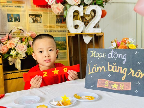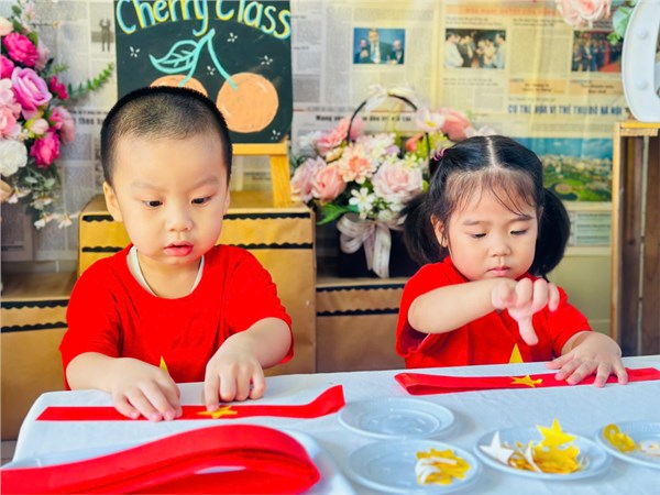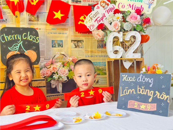Tập ảnh : CÁC BÉ LỚP CHERRY LÀM BĂNG RÔN CHÀO MỪNG QUỐC KHÁNH 2-9