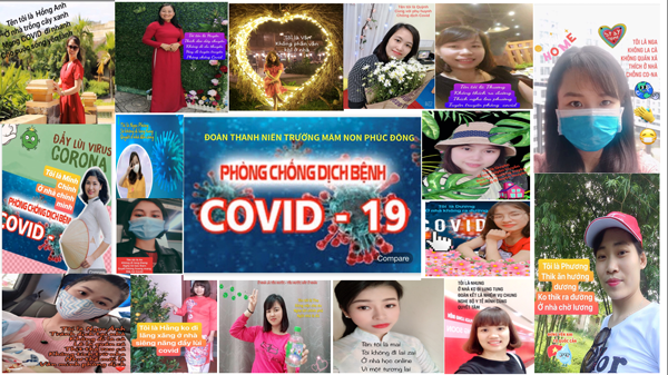 Các đoàn viên còn sử dụng các slogan trên các trang mạng xã hội Zalo, Facebook ..cá nhân của mình để tuyên truyền rộng rãi đến mọi người. Một phong trào nhỏ của Chi Đoàn trong rất nhiều phong trào, rất nhiều những hoạt động mà Trường MN Phúc Đồng phát động trong mùa dịch để chung tay cùng Chính Phủ, cùng cả nước và Thủ đô Hà Nội yêu dấu đẩy lùi dịch bệnh Corona.