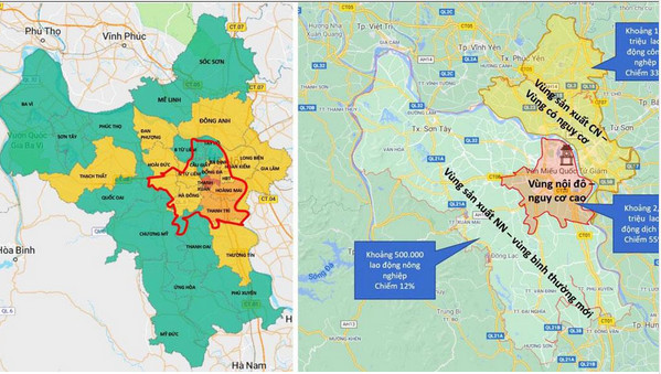 - Phạm vi: Bao gồm toàn bộ địa giới hành chính của 10 quận/huyện: Tây Hồ, Ba Đình, Cầu Giấy, Hoàn Kiếm, Đống Đa, Hai Bà Trưng, Thanh Xuân, Hà Đông, Hoàng Mai, Thanh Trì, và một phần địa giới hành chính của 5 quận/huyện: Nam Từ Liêm, Bắc Từ Liêm, Hoài Đức, Thanh Oai, Thường Tín bao quanh bởi sông Nhuệ, kênh Cầu Ngà, sông Đáy, kênh Khê Tang, sông Tô Lịch, kênh Hồng Vân và sông Hồng về nội đô.