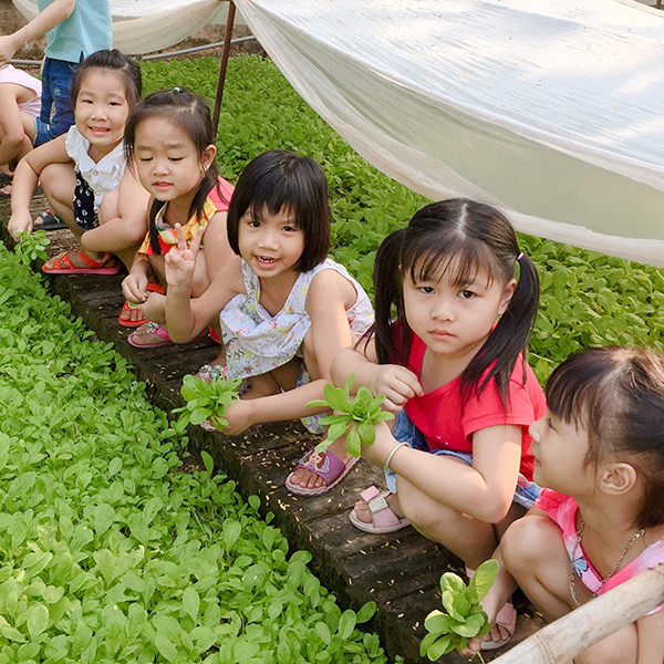 Sau thời gian gieo trồng, chăm sóc, những luống rau cải xanh được chính tay cô trò lớp Mẫu giáo lớn A4 nhặt cỏ, bắt sâu nay đã đến ngày thu hoạch. Hôm nay, 4/3/2019 cả lớp mình đã có buổi thu hoạch rau thật hào hứng và không kém phần vui vẻ. Trước khi chúng mình bắt đầu, chúng mình được cô hướng dẫn cách nhổ rau, cách nhặt rau như thế nào. Bạn nào bạn nấy đều vô cùng thích thú muốn bắt tay vào thu hoach rau ngay, ai cũng muốn mình nhổ được nhiều rau nhất. Tiếng cười giòn rã, những thắc mắc hay “phát minh” tức thì vang lên huyên náo khu vườn. Công việc thu hoạch rau tưởng chừng như vất vả này lại trở thành hoạt động vui và hứng thú nhất ngày học hôm nay của chúng tớ. Các bạn biết không, tự tay mình làm việc vui lắm đấy và chúng tớ thật vui khi chính đôi bàn tay nhỏ xinh của mình đã nhổ được những cây rau trông ngon lành cho bữa trưa no say, được tự tay đem thành quả của chúng mình xuống bếp để các bác nhà bếp chế biến món canh bổ dưỡng.