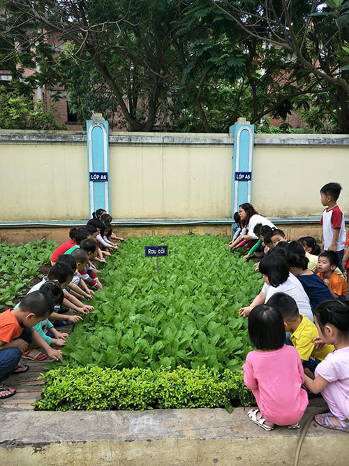 Từ việc lên kế hoạch cụ thể đến thực tế thực hiện cho thấy đây là mô hình trồng rau thực sự có ích đối với trẻ. Nhà trường đã quy hoạch, trang trí khu vườn rau đẹp, khoa học, có phân khu cho từng lớp với nhiều loại rau được trồng trong các luống. Hàng ngày cô và trẻ các lớp ra chăm sóc vườn rau theo lịch xây dựng trong kế hoạch tháng. Khi ra vườn rau, trẻ nhổ cỏ, tưới rau cùng cô tạo cho trẻ niềm vui và đồng thời rèn kỹ năng sống cho trẻ.