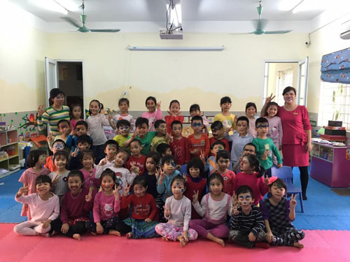 Cô và trò lớp mẫu giáo lớn A1 đã vẽ hình trên khuôn mặt