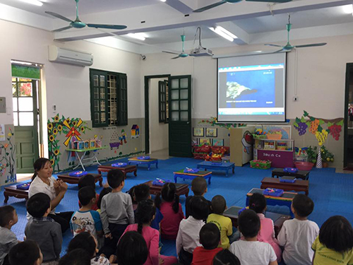 Trong đoạn video cô cho trẻ thấy một phần cuộc sống trong lòng đại dương vô cùng phong phú và đa dạng. Trẻ quan sát hình dạng, các bộ phận, cách di chuyển của Bạch Tuộc, Rùa biển và Cua biển.