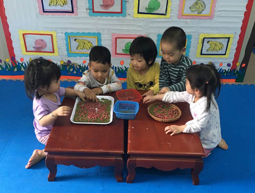Trẻ thích thú tham gia trò chơi nhặt và phân loại hạt