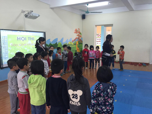 Trò chơi thử tài thông minh cũng không kém phần sôi động với sự lựa chọn chữ còn thiếu trên màn hình trẻ biết kéo thả đúng chữ còn thiếu, đội nào kéo thả đúng chữ và nhiều sẽ giành chiến thắng.