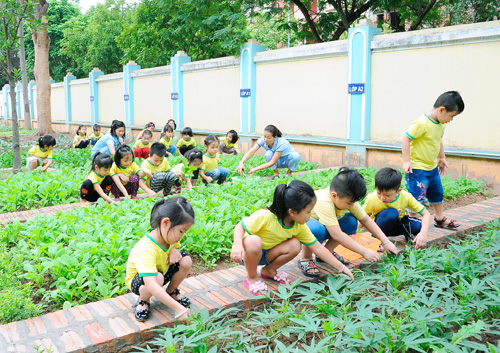 Đây là một hoạt động vui và bổ ích, trẻ hào hứng và thích thú khi được cùng cô làm việc, được cùng bạn tự tay chăm sóc rau và thu hoạch chúng.