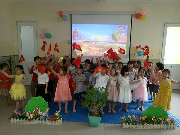 Trước buổi lễ, 2 cô giáo ở lớp đã chuẩn bị chu đáo từ phông hình đến sơ bộ chương trình và âm nhạc để buổi lễ diễn ra thật trang trọng và sôi nổi. Phu huynh và các con cùng hân hoan chào đón một năm học mới bằng tiết mục hát múa mở đầu “Cô và mẹ” với giai điệu vui tươi không kém phần sâu lắng