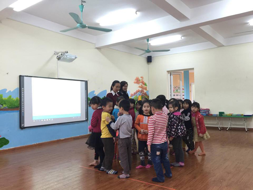 Cô giáo đang hướng dẫn chơi trò chơi con học giỏi.