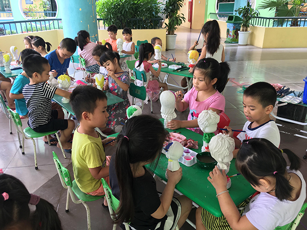Các con hào hứng với hoạt động tô mặt nạ, tô tượng