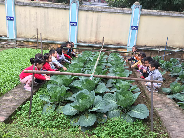 Vườn rau sạch còn giúp trẻ mầm non làm quen với thế giới thực vật sinh động qua các giờ học ngoài trời trực tiếp tham gia trồng, chăm sóc rau chứng kiến quá trình sinh trưởng phát triển của cây, hưởng thụ thành quả lao động của mình khiến vườn rau càng thêm ý nghĩa.