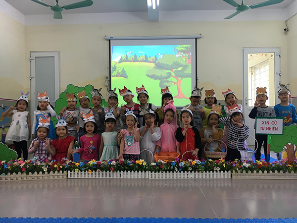 Với mục đích giúp giúp cho giáo viên trong trường nắm chắc hơn nữa những đổi mới trong lĩnh vực phát triển nhận thức và phát triển ngôn ngữ cho trẻ. Trường Mầm non Phúc Đồng đã tưng bừng tổ chức hội thi: “ Giáo viên nhân viên giỏi” cấp trường với 2 lĩnh vực chủ đạo là PTNT và PTNN. Ngày 2/11/2018 lớp MGL A1 cũng đã tham gia hội thi với đề tài: Dạy trẻ đóng kịch- Một trong những nội dung rất hay trong lĩnh vực PTNN. Trẻ vô cùng thích thú với hoạt động này và đã hoàn thành tốt tiết học của mình.