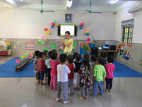 Trẻ hăng say hát cùng cô
