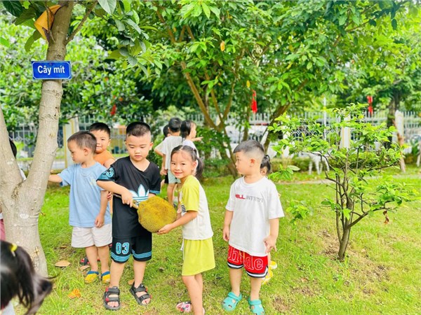 Tập ảnh : Hoạt động khám phá quả Mít của khối Mấu giáo bé