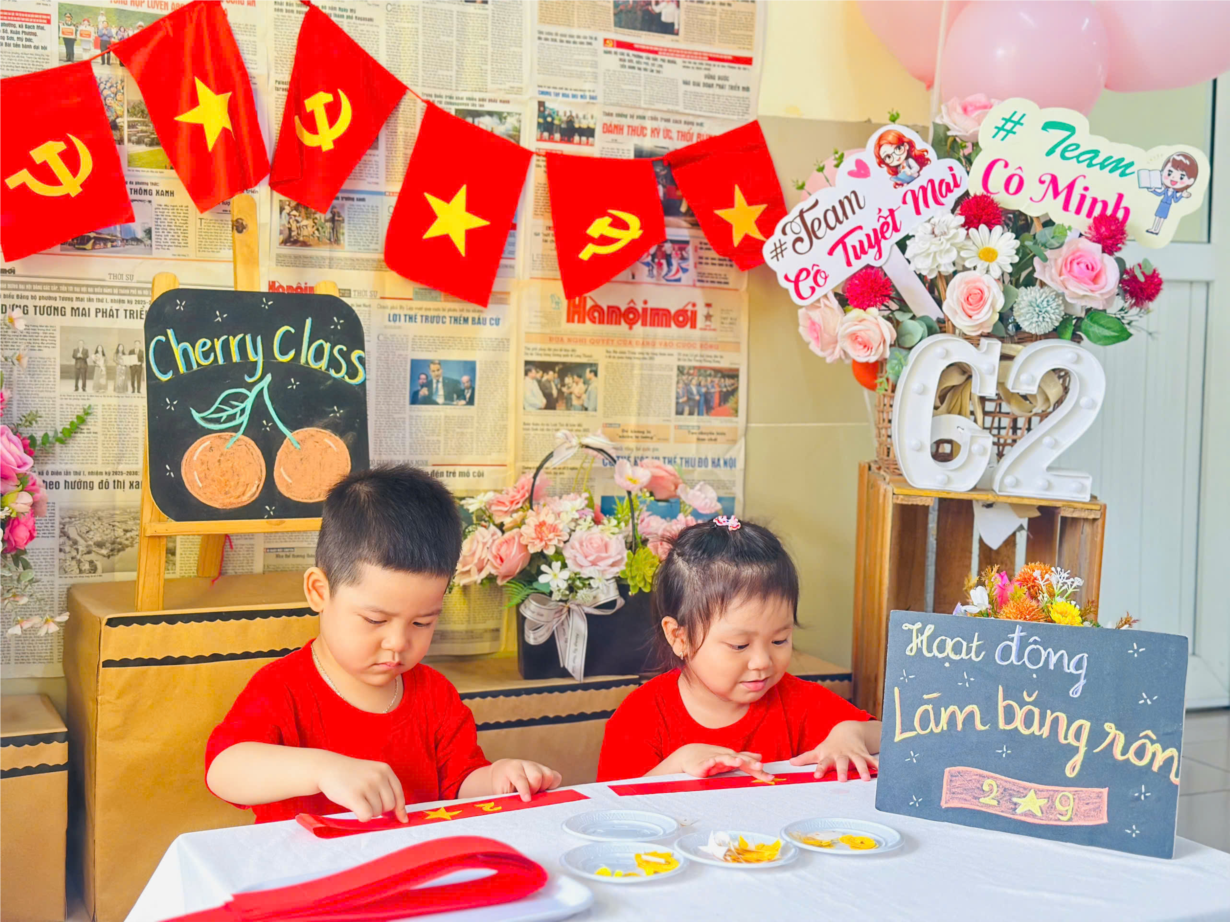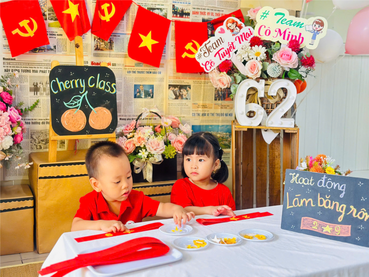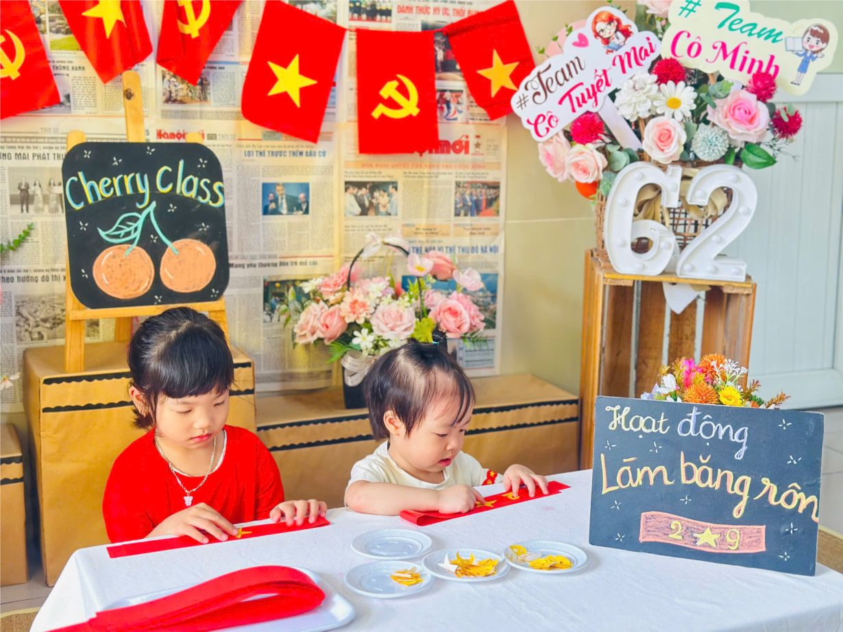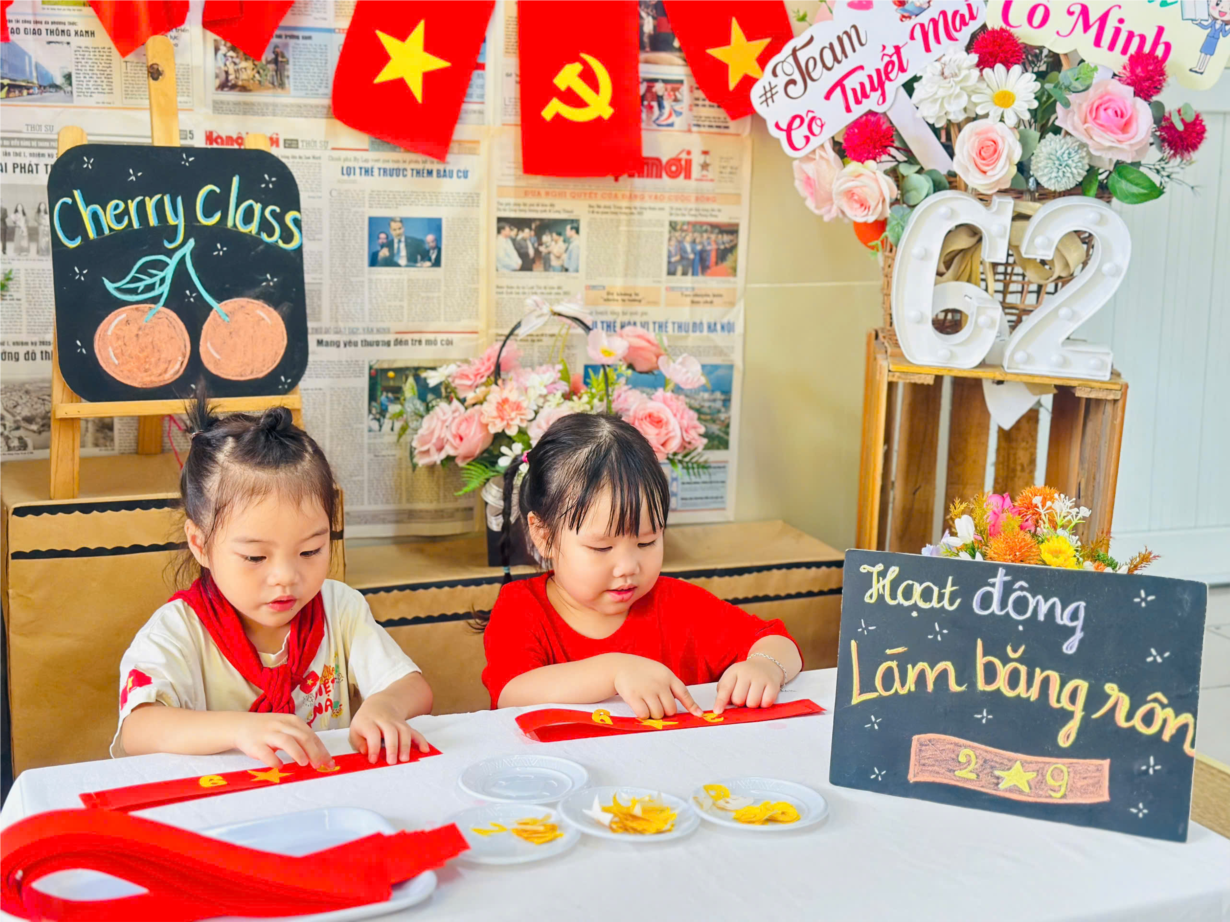 CÁC BÉ LỚP CHERRY LÀM BĂNG RÔN CHÀO MỪNG QUỐC KHÁNH 2-9