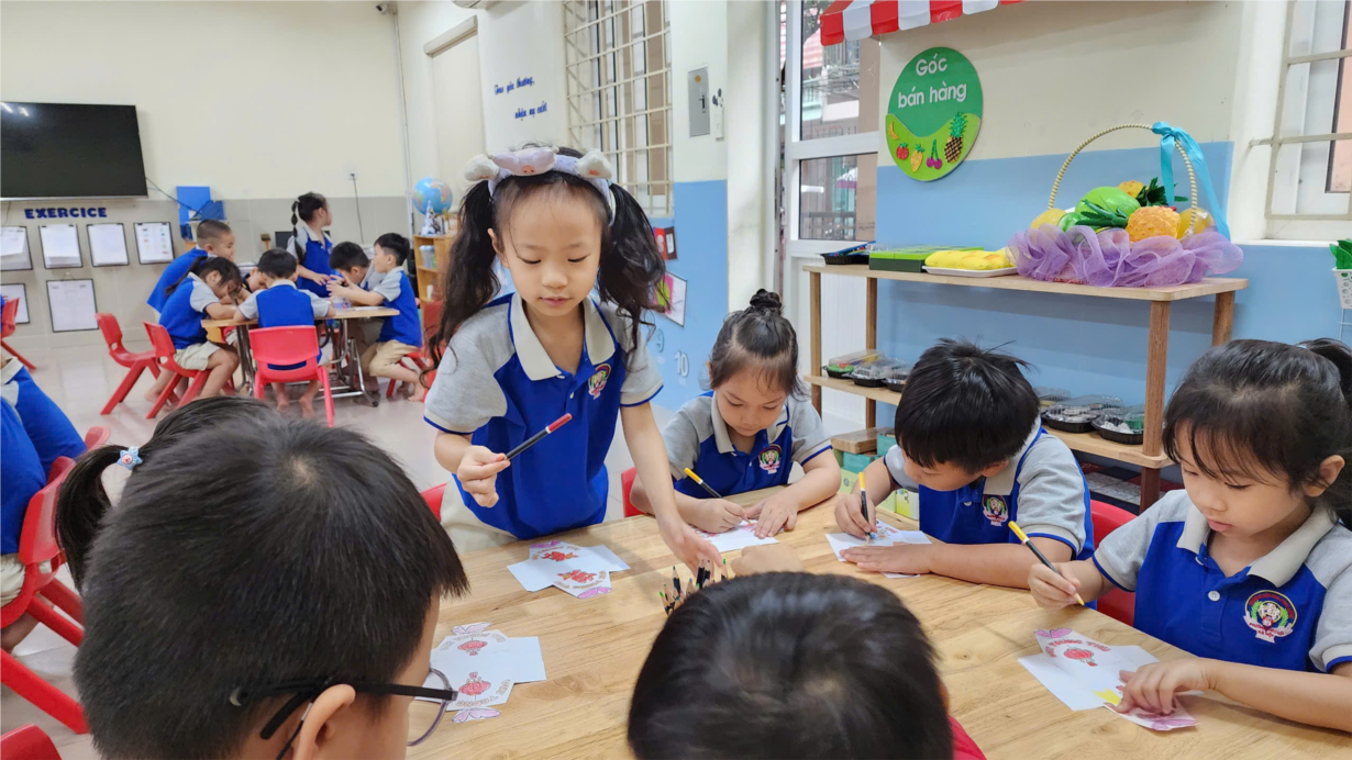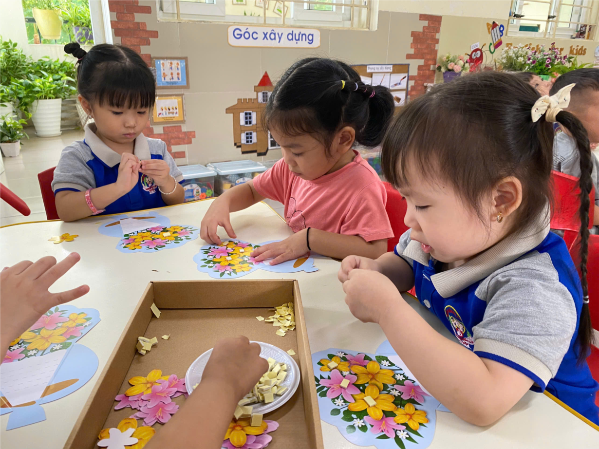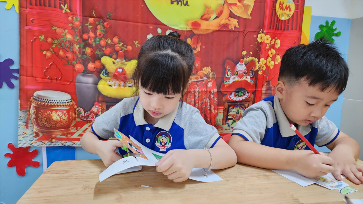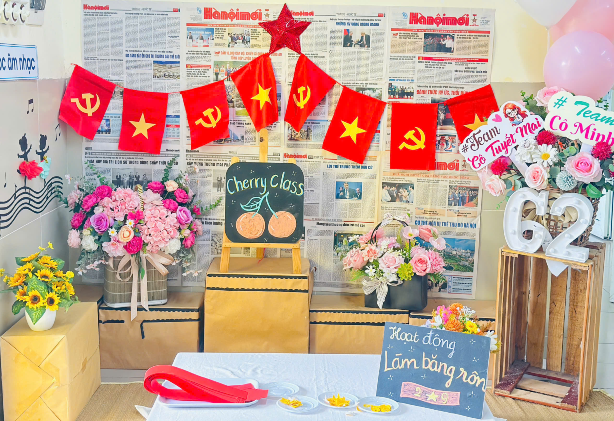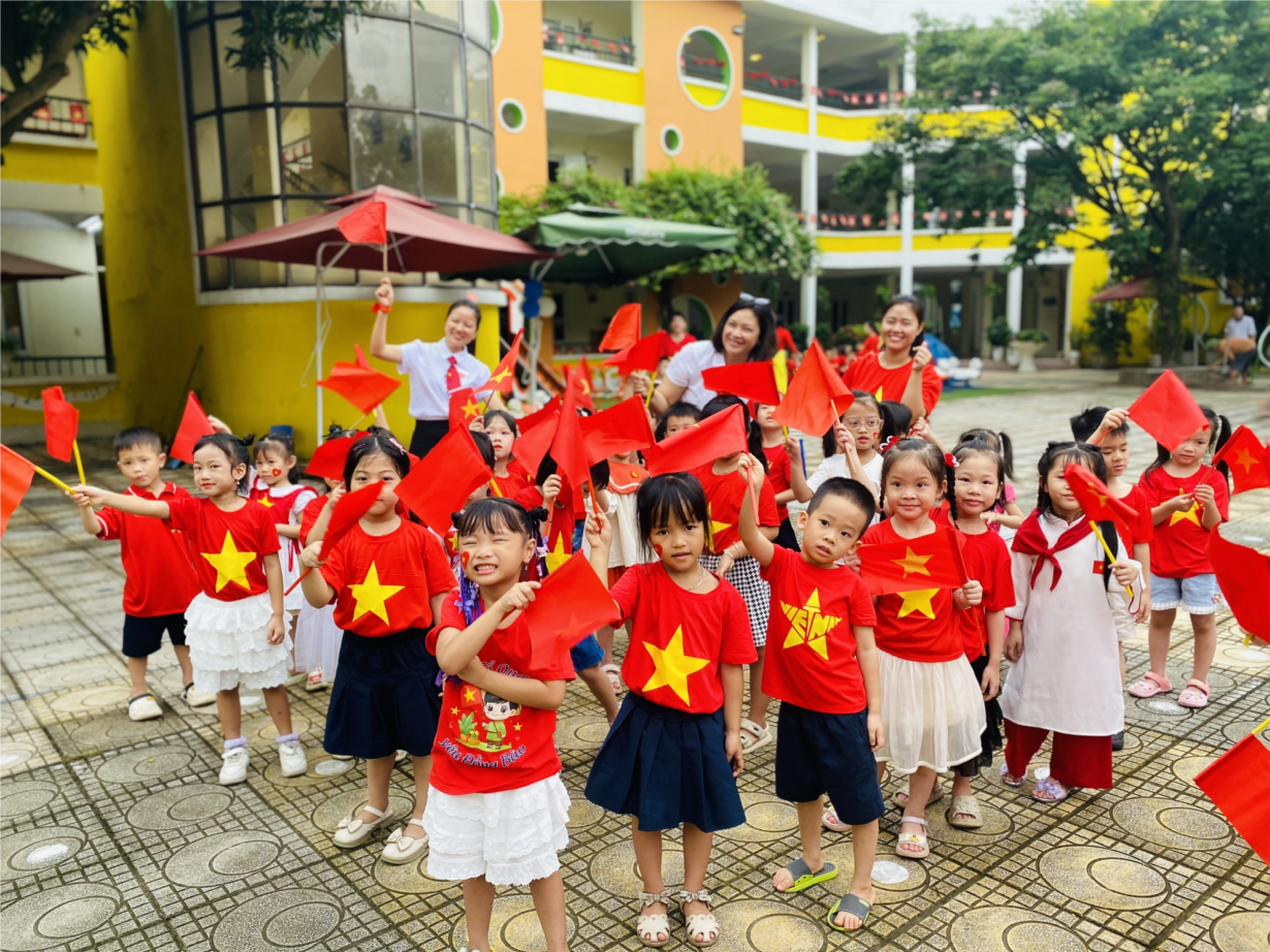 CÁC BÉ LỚP CHERRY LÀM BĂNG RÔN CHÀO MỪNG QUỐC KHÁNH 2-9