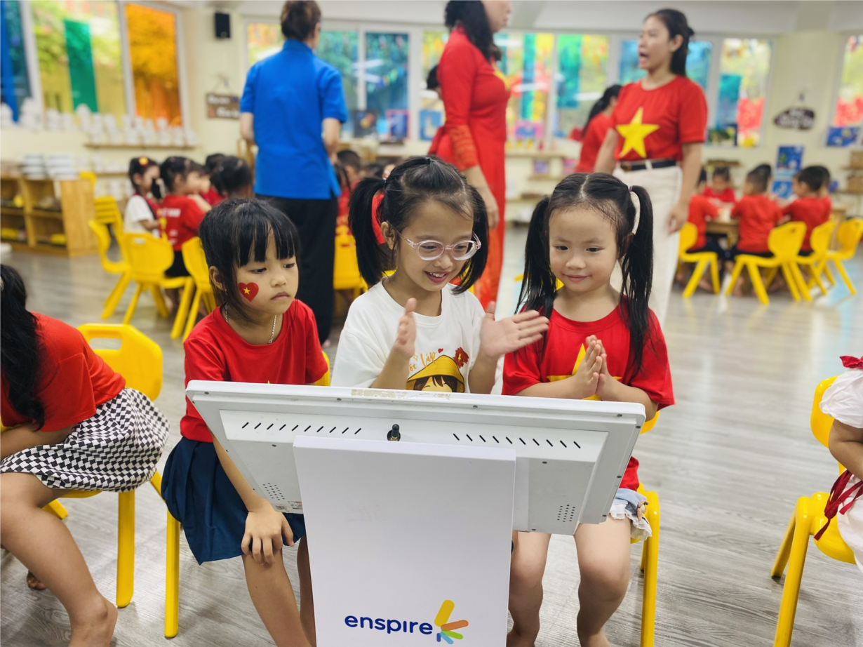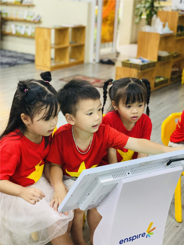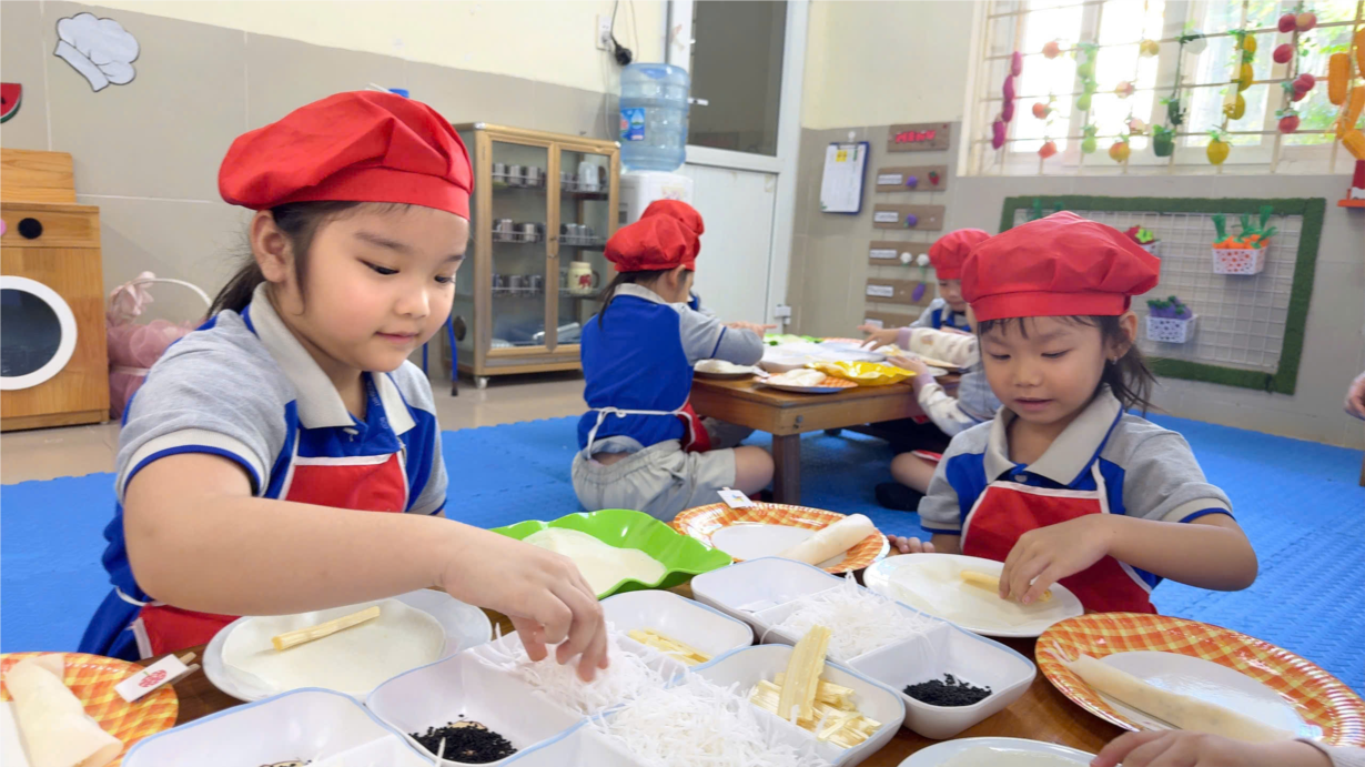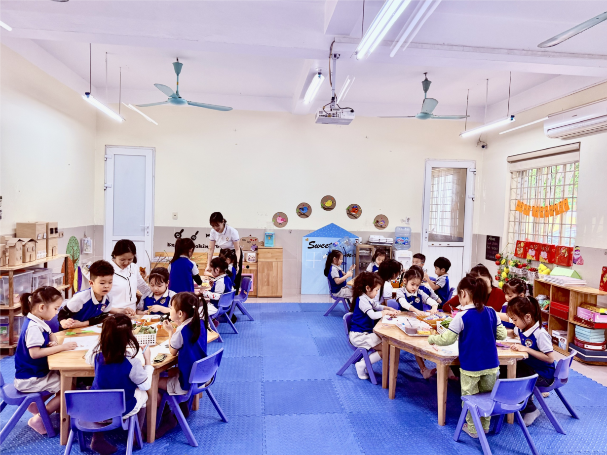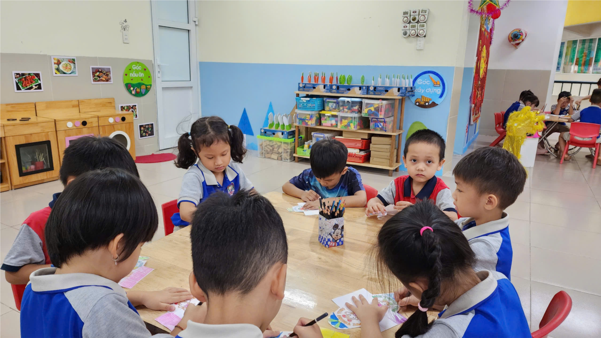 CÁC BÉ LỚP CHERRY LÀM BĂNG RÔN CHÀO MỪNG QUỐC KHÁNH 2-9
