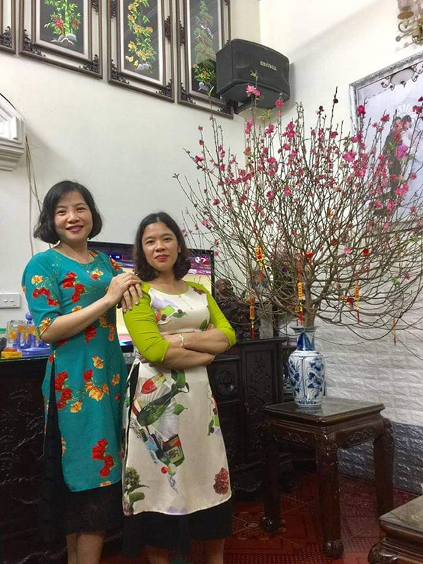 Phượng bên phải cùng dồng nghiệp đi chúc Tết