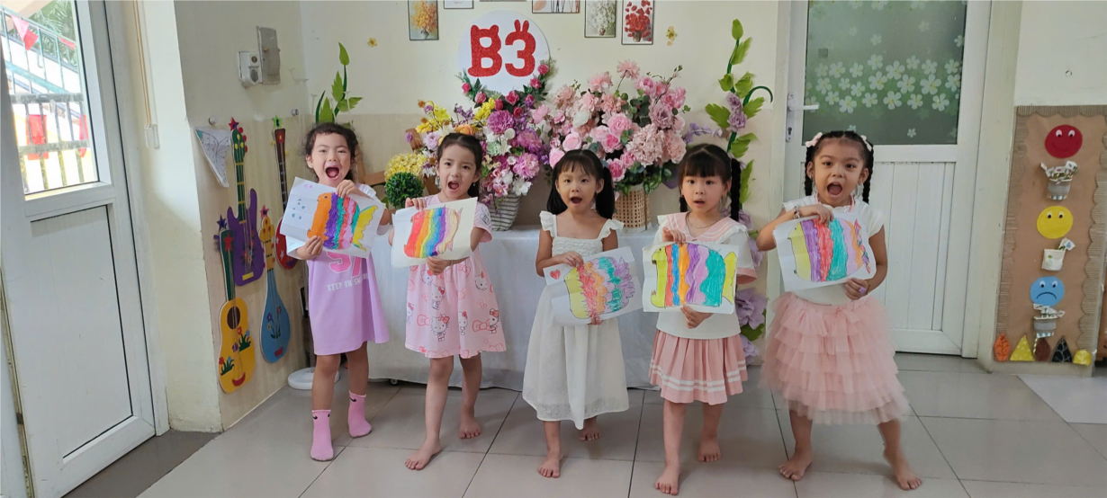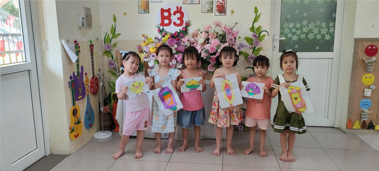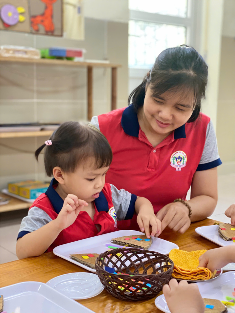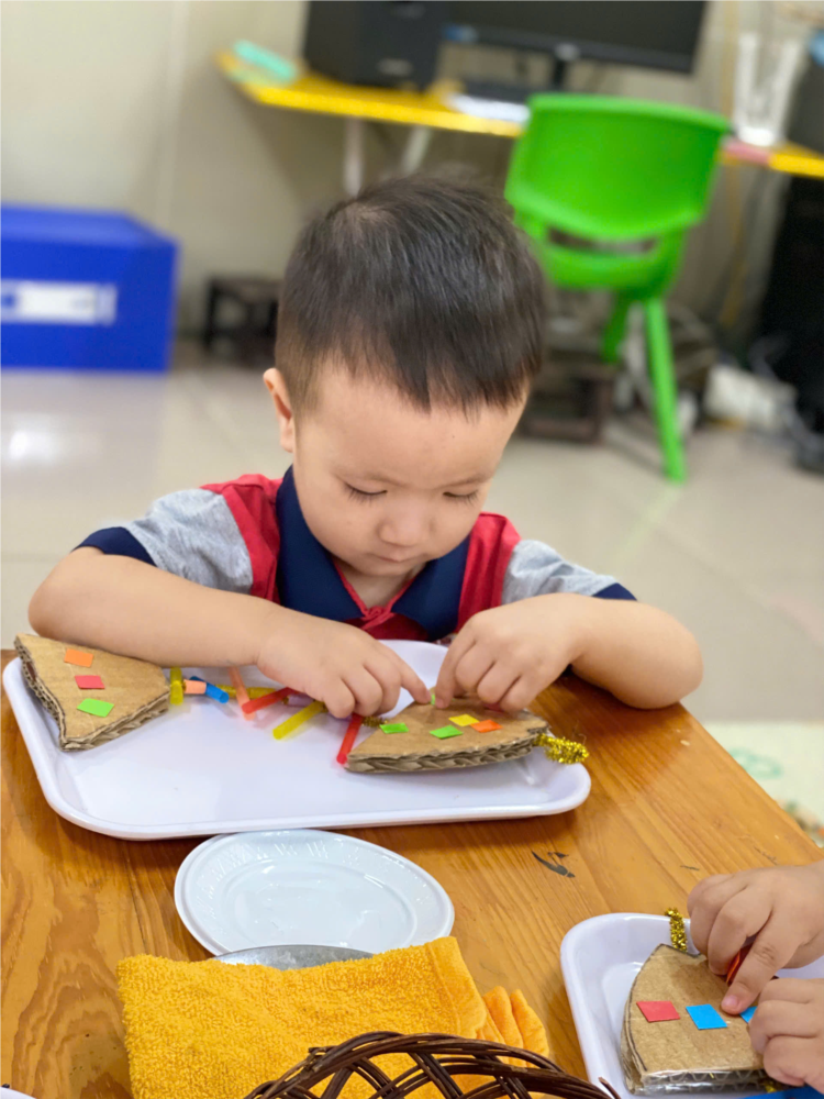 Hoạt động tạo hình "Trang trí con cá" của khối Nhà Trẻ