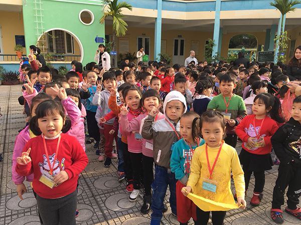 Các bé háo hức chuẩn bị chuyến đi giã ngoại.