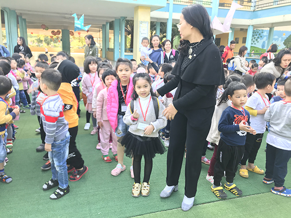 Các bé háo hức chuẩn bị chuyến đi giã ngoại.