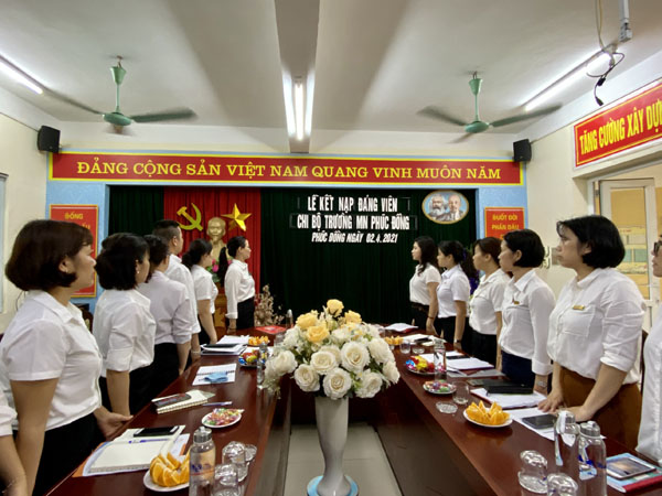 Hòa chung không khí tưng bùng cả nước đang hướng tới kỷ niệm 46 năm Ngày giải phóng miền Nam, thống nhất đất nước và 130 năm ngày Quốc Tế Lao động 1/5. Được sự đồng ý của Quận Ủy Long Biên, Đảng bộ phường Phúc Đồng chiều ngày 02/04/2021 , Chi bộ mầm non Phúc Đồng long trọng tổ chức lễ kết nạp Đảng viên mới cho đồng chí Hoàng Thị Dung.