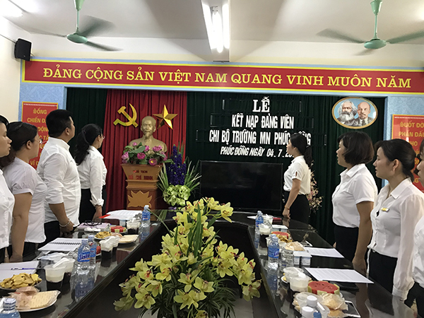 Hòa chung không khí thi đua tưng bừng cùng cả nước hướng tới kỷ niệm các sự kiện lớn như giải phóng Thủ đô nhân kỷ niệm 65 năm (10/10/1954-10/10/2019) và kỷ niệm 65 năm ngành GD&ĐT Thủ đô Hà Nội. Kỷ niệm ngày Liên hiệp phụ nữ Việt Nam ngày 20/10 và gần nhất là kỷ niệm ngày thương binh, liệt sỹ 27/7.Được sự động ý của Đảng ủy phường Phúc Đồng, sự nhất trí của chi bộ trường mầm non Phúc Đồng, chi bộ trường mầm non Phúc Đồng long trọng tổ chức Lễ kết nạp đảng viên mới cho 03 quần chúng ưu tú: Tạ Thị Minh, Đỗ Hồng Anh, Phạm Thị Hiền vào Đảng cộng sản Việt Nam