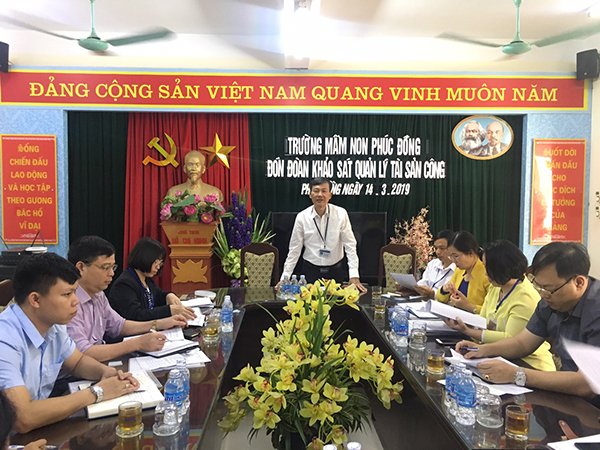 Tài sản công được cập nhật tại Cơ sở dữ liệu quốc gia về tài sản nhà nước. Thời gian qua, công tác quản lý sử dụng tài sản công được siết chặt nhằm nâng cao hiệu quả sử dụng và tránh thất thoát, lãng phí tài sản của nhà nước. Để tuyên truyền và triển khai các nội dung hướng dẫn các đơn vị thực hiện đúng quy trình quản lý và sử dụng tài sản công, Thực hiện KH số 76/KH-HĐND ngày 21/01/2019 của HĐND Quận Long Biên, thường trực Hội đồng nhân dân quận đã triển khai khảo sát một số đơn vị trong quận, trong đó đại diện khối trường học, trường mầm non Phúc Đồng được chọn để đoàn tiến hành khảo sát, lấy ý kiến vướng mắc và tổng hợp các vấn đề liên quan đến quản lý và sử dụng tài sản công.
