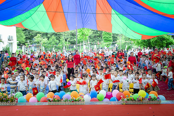 Ngay từ buổi sáng sớm, khi bước chân vào cổng trường với niềm hân hoan trong Ngày Hội đến trường của bé, các bé với những lá cờ đỏ sao vàng và những bông hoa rực rỡ nhiều màu sắc trên tay cùng bố mẹ đến trường trong một niềm vui khôn tả.