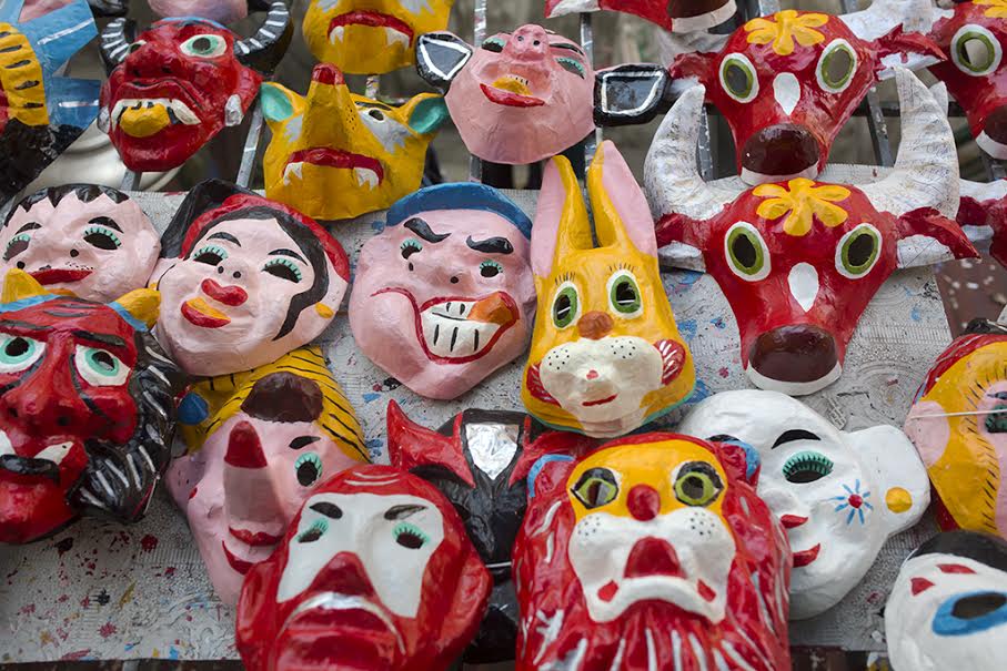 Các cô giáo đang bồi mặt nạ.