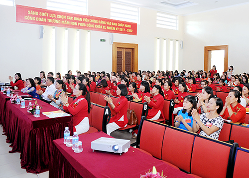 Đại hội đã tiến hành bầu cử thành công và tín nhiệm lựa chọn 05 đồng chí vào BCH CĐ khóa VI, nhiệm kỳ 2017 - 2022, Ngay sau đó, Hội nghị họp BCH CĐ phiên thứ nhất đã được triệu tập và bầu các chức danh: đ/c Đào Thị Quỳnh Trang - Phó hiệu trưởng, CTCĐ khóa V đã tái đắc cử vào chức danh CTCĐ khóa VI. đ/c Nguyễn Thị Hà - TT tổ VP tiếp tục giữ chức PCT CĐ, đ/c Kiều Thị Hoa Lệ - giáo viên, là thành viên mới trúng cử giữ chức vụ Chủ nhiệm UBKT Công đoàn, hai đ/c Trương Thị Hoa - PHT, Phạm Thị Bích - TT chuyên môn khối MG Lớn là Ủy viên BCH CĐ khóa VI, nhiệm kỳ 2017 - 2022.