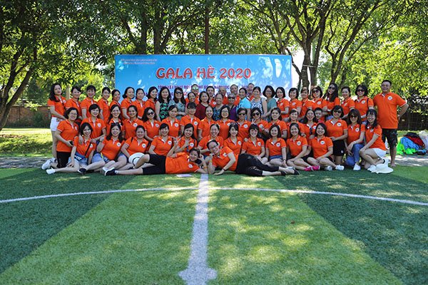 Đúng 6h 10’ đoàn chúng tôi gồm tất cả CBGVNV và các đồng chí đã nghỉ hưu xuất phát từ trường với 02 xe 45 chỗ, lên đến nơi, đoàn nhận phòng và tập kết để xuống khu sân cỏ tổ chức sự kiện do Ban tổ chức đã chuẩn bị sẵn. Tại đây, chúng tôi đã có một buổi tổng kết, giao lưu vô cùng ấn tượng.Mở đầu là màn dân vũ sôi động của các cô giáo trẻ trong trường để khởi động tinh thần cho tất cả các đội tham gia.