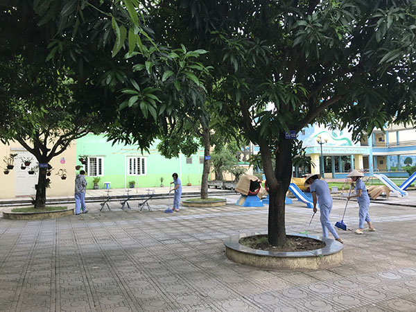 Đoàn thanh niên trường MN Phúc Đồng luôn duy trì tốt lịch tổng vệ sinh vào thứ Sáu hàng tuần. Trong buổi tổng vệ sinh tuần này, ngày 18/9/2020, GVNV cùng tham gia tổng vệ sinh khuôn viên trường học với các công việc: tổng vệ sinh sân trường, hành lang, lau lá cây, chăm vườn rau, quét dọn và sắp xếp lại khu vui chơi của trẻ, nơi tập kết rác…. Ngoài việc dọn vệ sinh khu ngoài lớp học, giáo viên các lớp cũng chủ động quét dọn, khử khuẩn đồ dùng, đồ chơi, tay nắm cửa và chuẩn bị các đồ dùng thiết bị đo thân nhiệt cho buổi sáng ngày thứ Hai đón trẻ.
