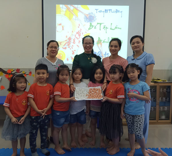 Các bạn nhỏ lớp MGB C4 với sản phẩm bánh trôi tự làm