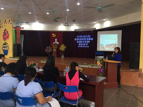 Tới dự buổi tuyên truyền, có đồng chí Đỗ Thị Thanh Tâm Bí thư chi bộ - Hiệu trưởng nhà trường. Đ/c Lương Minh Nguyệt - Trưởng phòng y tế Quận Long Biên và Đ/c Lê Thị Thanh Lương - Chuyên viên phòng y tế Quận. Cùng sự có mặt của 150 cán bộ, giáo viên, nhân viên và phụ huynh nhà trường. Đ/c Lương Minh Nguyệt - Trưởng phòng y tế Quận Long Biên trực tiếp giảng bài tuyên truyền.
