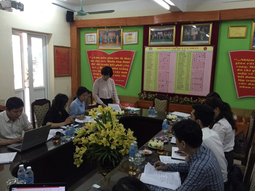 Đúng 8h00’ sáng, đoàn kiểm tra bắt đầu làm việc. đồng chí Trưởng đoàn Vũ Thị Thu Hà đã thông qua quyết định thành lập đoàn kiểm tra và nêu mục đích của buổi kiểm tra để rà soát những nội dung Nhà trường đã làm được trong năm học 2016 – 2017 theo tiêu chí mô hình THĐT, đánh giá và giúp đỡ nhà trường tiếp tục thực hiện để được quận công nhận đạt tiêu chuẩn THĐT trong năm học này. Đồng chí cũng phân công cho các đ/c thành viên trong đoàn về nhiệm vụ kiểm tra của mình. Sau khi nghe phân công nhiệm vụ, đồng chí Đỗ Thị Thanh Tâm đã phân công các bộ phận liên quan cung cấp tài liệu, hồ sơ và minh chứng theo yêu cầu của đoàn kiểm tra.