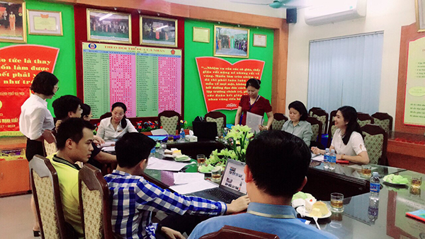 Đại diện phía Nhà trường đón đoàn có đồng chí Đỗ Thị Thanh Tâm – Bí thư chi bộ, Hiệu trưởng nhà trường cùng các đồng chí trong BGH, các đồng chí trong ban chỉ đạo mô hình THĐT của nhà trường. Đúng 15h30’ chiều, đoàn kiểm tra bắt đầu làm việc. Đồng chí Trưởng đoàn đã thông qua quyết định thành lập đoàn kiểm tra và triển khai các nội dung kiểm tra cho các đ/c thành viên trong đoàn về nhiệm vụ kiểm tra của mình. Sau khi nghe triển khai nhiệm vụ, đồng chí Hiệu trưởng nhà trường đã phân công các bộ phận liên quan cung cấp tài liệu, hồ sơ và minh chứng theo yêu cầu của đoàn kiểm tra.