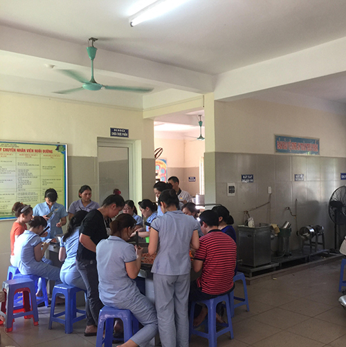 Các bác, các cô đang chế biến món ăn cho trẻ