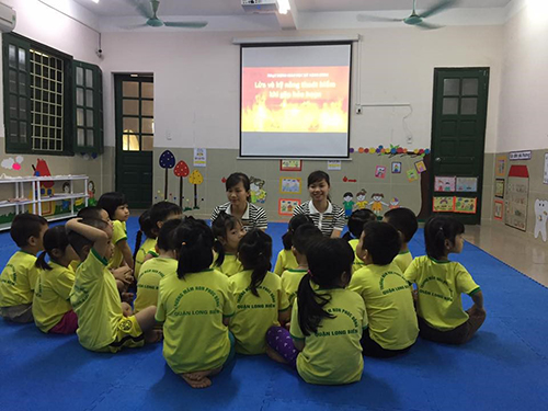 Với sự dẫn dắt hấp dẫn qua việc kể một số tình huống cháy xảy ra trong siệu thị hay cháy bên nhà hàng xóm. Hai cô đã ngay từ đầu tạo cho trẻ hình dung được phần nào các biểu hiện của đám cháy.