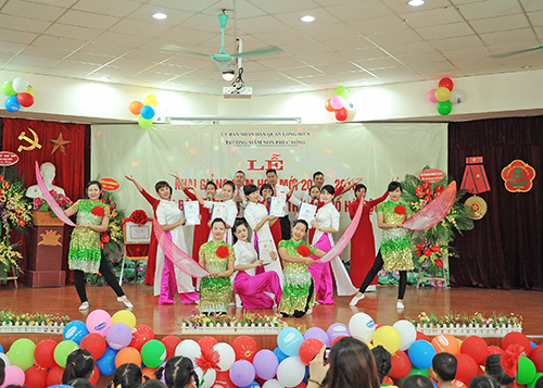 Đặc biệt, trong lễ Khai giảng năm học này, tập thể CBGVNV trường MN Phúc Đồng vinh dự được nhận Bằng khen của UBND Thành phố ghi nhận đơn vị có thành tích xuất sắc trong năm học 2016 - 2017.
