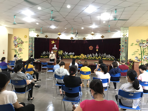 Tiếp đến là đồng chí Đào Thị Quỳnh Trang - HPCM lên triển khai một số công tác chuyên môn cần thiết để đảm bảo khi đón trẻ đến trường vừa đảm bảo sự giãn cách nhưng vẫn đảm bảo trẻ học đúng, đủ chương trình học.