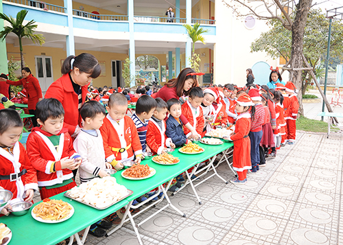 Tiệc buffet đã trở nên rất quen thuộc và là một nét văn hóa ăn uống mới trong cuộc sống hiện đại. Nhân dịp giáng sinh, chào đón năm mới 2018, Trường MN Phúc Đồng tổ chức tiệc buffet với mong muốn các con có 1 bữa tiệc ngon miệng bên những người bạn thân yêu, đồng thời giúp các con được trải nghiệm thêm các kĩ năng sống cần thiết trong khi ăn uống.