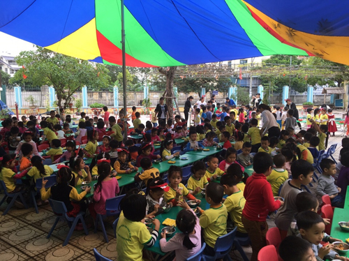 Về chung vui với cô và trò nhà trường là sự có mặt của đông đảo các bậc phụ huynh đại diện cho Ban đại diện cha mẹ học sinh trong trường. Và đặc biệt là sự tham gia của hơn 800 trẻ.