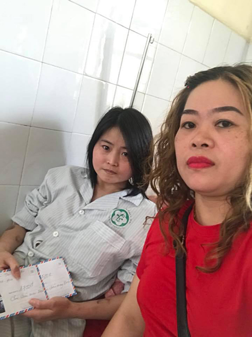 Chị thăm hỏi bệnh nhân ở viện