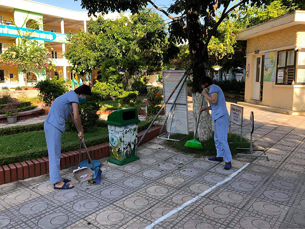 Tình hình dịch bệnh Covid 19 trong nước đang được kiểm soát chặt chẽ nhưng tập thể trường mầm non Phúc Đồng không chủ quan, vẫn luôn thwucj hiện tốt các biện pháp phòng chống dịch trong tình hình mới. Vệ sinh trường lớp sạch sẽ là nhiệm vụ quan trọng trong công tác phòng chống dịch để đảm bảo sức khỏe cho CBGVNV, đặc biệt là các bé theo học tại trường. Nhận thức rõ điều này, hằng ngày, sau mỗi hoạt động ăn, ngủ, chơi của trẻ các cô giáo đều nghiêm túc thực hiện công tác vệ sinh lớp học. Khi học sinh ra về lớp học luôn gọn gàng, sạch sẽ để chuẩn bị cho mọi hoạt động ngày hôm sau. Và cứ thứ Sáu hàng tuần, theo thông lệ, CBGVNV nhà trường lại cùng nhau ra sân thực hiện tổng vệ sinh bên ngoài lớp học: quét sân, nhặt cỏ, loại bỏ đồ chươi hỏng, vũng nước đọng sau mưa…. đem lại chiếc áo mới “Xanh – sạch – đẹp” cho ngôi nhà Phúc Đồng.
