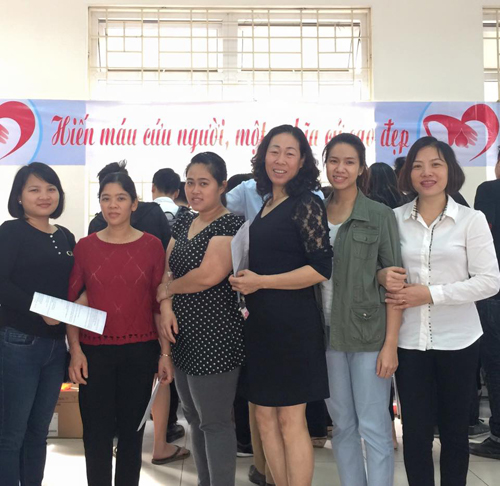 Đại diện Công đoàn nhà trường và các giáo viên tham gia hiến máu