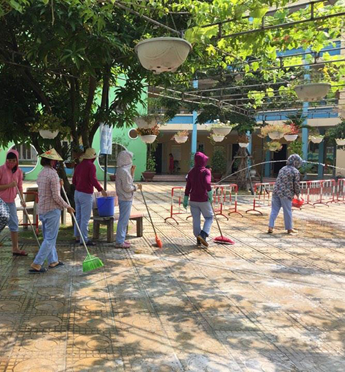 Thực hiện theo kế hoạch tổng về sinh môi trường, phòng chống dịch bệnh năm 2017của quận Long Biên, đảm bảo việc giữ gìn môi trường luôn “Sáng - Xanh - Sạch- Đẹp - An toàn - Thân thiện” để trẻ được học tập, vui chơi trong môi trường an toàn và lành mạnh, ngày thứ hai đầu tuần, cán bộ giáo viên và nhân viên trường mầm non Phúc Đồng đã tham gia tổng vệ sinh toàn trường với những công việc như: vệ sinh các phòng học, các phòng chức năng, khu vực trong và ngoài bếp, dọn cỏ khu vườn rau, rắc vôi bột vệ sinh sân trường,…nhằm giảm thiểu tối đa các ổ đọng nước, loại bỏ những nơi phát sinh muỗi truyền bệnh sôt xuất huyết trong nhà trường. Dưới sự chỉ đạo của ban giám hiệu, cán bộ giáo viên và nhân viên được phân công làm vệ sinh ở các khu vực theo nhóm, được giao nhiệm vụ rất rõ người, rõ việc, khoa học.